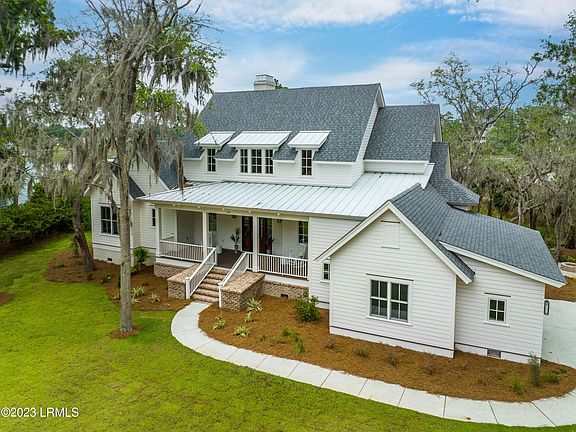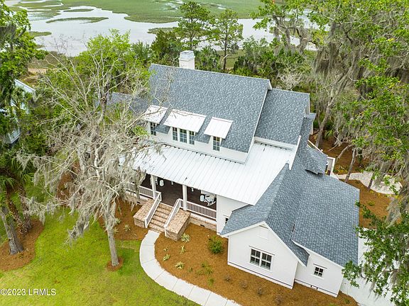 Want to Live Your Best Lowcountry Life in this brand new construction home in The Islands of Beaufort? It was built with the finest craftsmanship with all the comforts and upgrades by one of Beaufort's Premier Live Oak Home Builders. This 4 bedroom 3 and a half bathroom home was designed with a large, open first floor that is the quintessential room for entertaining. The first- floor open space contains a luxury, gourmet, entertaining kitchen with 36-inch, GE Monogram Stove, Microwave, Refrigerator and stainless steel appliances. The convenience of an elevator located off of the the open living room and utility room is welcoming and helps transport goods and heavy loads. The downstairs Master bedroom suite has a dual walk-in shower that is curbless with Carrera Classic finish lined tile. Go out through your private door off the Master bedroom into the porch connecting the living room. Enjoy your morning coffee overlooking the beautiful marshes overlooking Battery Creek. In addition, the Master bedroom has an extra-large walk-in closet complete with plenty of storage and organizational space. Retire at the end of the day to the serene spa inspired bathroom to soak in the oversize tub.The second Master bedroom downstairs is equally as expansive as the first bedroom with two closets and a bathroom lined with Calcutta Versailles tiles. Take the stairs or the elevator to the additional two bedrooms on the second floor that share a morning coffee and beverage bar. The curved accented grey handrail as you exit the elevator has an expansive landing that opens up to a seating area for light gathering. There is plenty of storage upstairs with easy access to store items. The great room is beautifully trimmed with hard wood floors throughout with built in cabinetry including space for a Sony Soundbar. Gorgeous Coffered Ceilings and a fireplace lined with shiplap to accent the remote controlled gas fireplace in the great room. This compliments the built-in bookshelves, which boasts entertaining and storage. At the end of a long day, relax in the enamel tub either by taking the stairs or the elevator that serves both floors or go outside and enjoy the outdoor kichen overlooking the beautiful marshes of Battery Creek. Built for energy efficiency with Marvin Hurricane rated windows and doors along with Hurricane shutters, this house also comes with a Generac disconnect setup and a 5 Ton Carrier Split Unit. Step outside to the expansive scenic porches to a remote-controlled outdoor gas fireplace. The outdoor kitchen has 3 cm granite a natural stone included 4" backsplash behind grillin Luna Pearl. The Coyote Grill Model will serve the backdrops to the future entertaining of guests and family. The tumbled-paver patio boasts a fire pit that will invite the comforts of the Lowcountry, and the beautiful & private outdoor area will remind you of the outdoor natural oasis that awaits you. The expansive, two car garag can park up to two cars and lead to the utility and laundry room. A definite Lowcountry stunner that looks out to the marshes of Islands of Beaufort and located across the Cotton Island bridge from the Belle Grove Clubhouse, playground, pool, tennis courts and fitness center. This home is situated in the coastal community of Islands of Beaufort where Lowcountry Living awaits you.