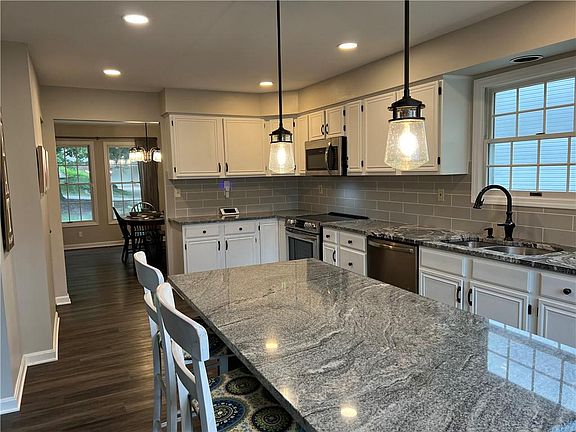 WOW! MUST SEE! WELCOME to this shabby chic home with many upgrades. When entering you are greeted by a 2 story foyer & an open floor plan with enhanced luxury vinyl flooring, sun drenched living room & dining room. Make your way to the huge newer gorgeous gourmet kitchen featuring white cabinets, stainless steel appliances, recessed lighting, an island & gleaming granite countertops accented by a subway tile backsplash. Completing the main level is a giant family room with French doors to the balcony w a fabulous view & half bath. Head upstairs to find the luxurious Master Bedroom w vaulted ceilings, Master Bath, double sinks, granite & 2 closets. The other 3 bedrooms are also upstairs and have generous closets. The upper level is completed with a newer full bath with granite. The lower level includes a game room, laundry area & oversized 2 car garage. The fenced in back yard is great for kids & pets. The extra long driveway can fit up to 6 cars. Conveniently located to Rt 19 & I-79.