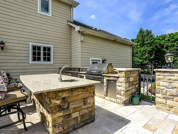 "One Of A Kind" From the curb you desire more of this well-built Lincroft home. As you enter this luxurious home you notice the inviting front porch and custom details throughout. The Main Level offers a custom kitchen with SS appliances, Granite topped Island & counters which opens to Family Room with custom mantled gas fireplace. Lavish Living Room, elegant formal Dining Room, private office & Mud Room off Garage. Top floor offers 3 ample Bedrooms and Posh MBR Suite with a Carrara Marbled shower & bath plus attached bonus room for office. Nursery or Gym and Laundry Room. The Basement has superior built wall construction and a sidewalk outdoor. Lastly step into a private Paradise featuring Travertine Tiled Patio & Pool with outdoor kitchen, gas fireplace, play area and a well-fed professional landscape.