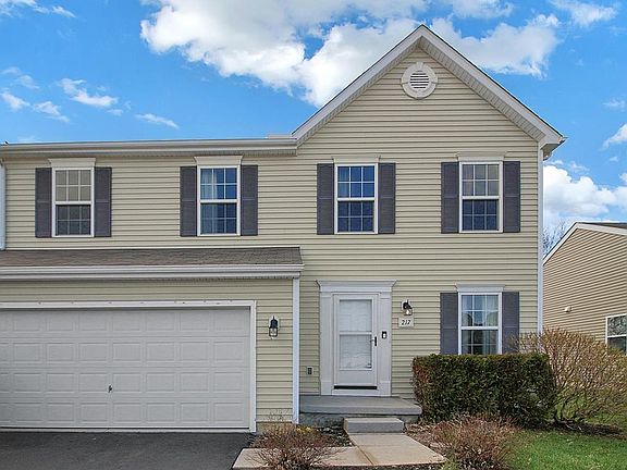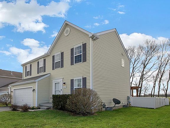 Beautiful Colonial Style offers 1965 sq ft, 3 beds plus loft and 2.5 bath welcomes you! Flex room leading to open great room and eat in kitchen area with ss appliances, an added bar area, new countertops/cabinets w/soft close drawers,1st floor laundry room, bamboo flooring throughout first level, and new patio doors leading to outside. Upstairs offers large loft could be turned into fourth bedroom or office, all bedrooms have large walk-in closets, gorgeous owners en suite with soaking tub. Full basement with poured walls and high ceilings ready to finish off for rec room. Backyard is breathtaking! Enjoy entertaining or just relaxing on this large stone paver patio with built in firepit, pergola partially over patio, and vinyl fenced in yard. Close to school. Seller is offering 5k for carpet allowance.