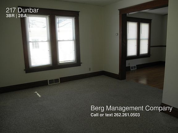 SCHEDULE A SHOWING ONLINE AT: showmojo.com/lh/010dbad0ad This large 3 bedroom 1.5 bath home will be available March 1, 2018. This home comes with a large 3 season front porch, one car detached garage and a large partially fenced in back yard. The home features stove, refrigerator,dishwasher and updates throughout. There is a partially finished basement with hook ups for a washer/dryer. Other features: Whirl pool tub upstairs, combination hardwood, tile and carpet throughout, plenty of storage space, built in cabinets, ceiling fans , and central air. PET FRIENDLY! Pet deposit is $250 and monthly rent $20 extra. Nice neighborhood with a park setting near. The tenant will responsible for electric/gas use as well as lawn care and snow removal. Landlord pays water, sewer and trash removal. Please note we do background checks on all applicants including verification of employment and income. Call 262-522-0635 or email rent@bergmanagement.com for any specific questions not answered by listing above. Call Berg Office - ONLY- for any last minute cancellations or changes - 262-521-9935.