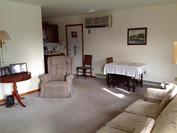 Adorable 2 BR rancher on dead end street. New windows, 1st floor laundry plus hookup in bsmnt, 1.5 baths, 1-car attached garage, deck, A/C, all appliances stay. Wood stove in LL. Living Rm: A/C heat pump on the wall for heat and air. Qualifies for 100% financing through USDA. Call for details.