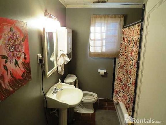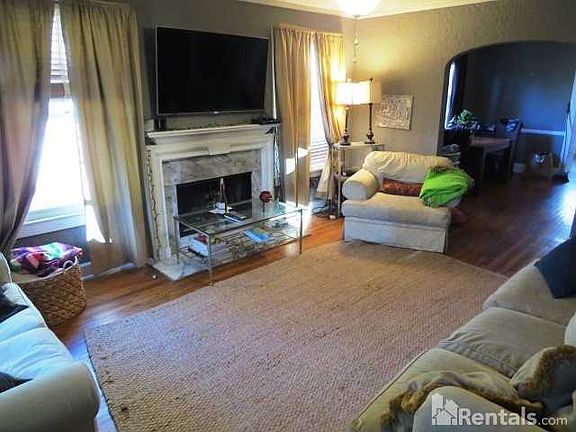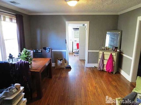 This beautiful cottage home is nestled in the heart of Edgewood. It is a 3 BR / 1 BA resting on a .25 acre lot with an adjusted area of 1,294 sq. ft. Upon entering, you'll be greeted by shiny hardwood floors and a living room complemented by a marble fireplace. To your right is a hallway connecting the 3 BRs and the full bathroom. Going forward from the living room is a dining room ready to be used! The kitchen is on the backside of the home, and is equipped with an electric stove, dishwasher, refrigerator, and a stackable washer/dryer in a folding door closet. There are also murals on the pantry door and above the stove for your everyday viewing pleasure. The large, fenced, and flat backyard completes the house; plenty of room for pets or parties! Parking is in the driveway or on the street in front of the house. The home is available for rent on Feb. 1st, 2018.