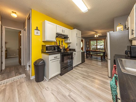 Great home with unique layout due to the oversized addition and conversion of the primary bedroom space! Main floor living with the laundry adjacent to the kitchen and bedrooms. Kitchen flows into open dining space and towards the formal front living room. Lots of natural light and windows, charming older home accents, and closets and storage throughout. The finished upstairs provides another bedroom, office, craft room, or storage space. Fully fenced yard with extra enclosed pen, two sheds and the swimming pool if you want it! Nice corner lot with easy access to highways so that you can enjoy the charm of Meriden small town living while being minutes away from the amenities of Topeka and other great nearby small towns.
