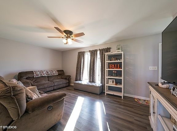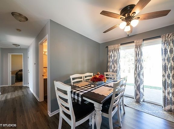 Charmingly renovated 3-bedroom, 2 renovated bath home features so many NEWs! NEW Duralux waterproof/scratch proof flooring, NEW neutral carpeting and padding, NEW base trim, NEW door handles, NEW light fixtures and ceiling fans. Expansive living room has tons of natural light (and NEW front window!). Kitchen features breakfast bar, abundant open-top cabinets, NEW quartz countertops, sink and faucet with newer fridge, dishwasher, double oven and microwave (2017) and roomy eating area with sliding door to backyard. Partially finished basement has bonus space for office, family room or more! Fresh paint inside and outside.Large backyard has IN-GROUND POOL with slide and plenty of room for play! SO MUCH MORE! Make your appointment today! *** Note: Room Sizes are Approximate ***