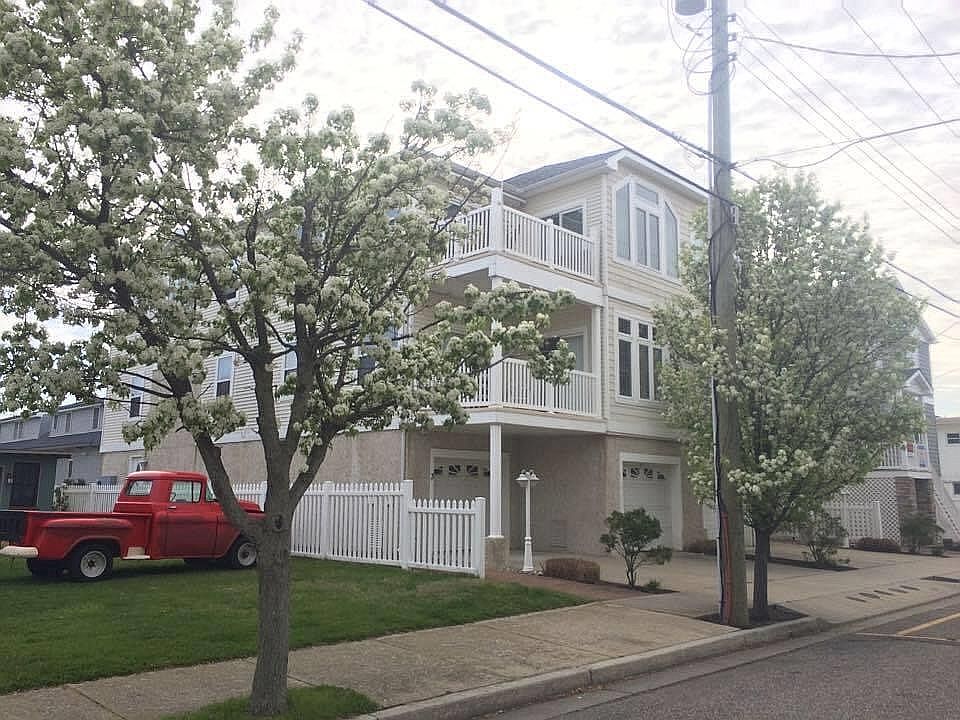 Luxury at the Jersey Shore! Top floor condo is owner occupied so it is lovingly cared for with lots of upgrades. 2.5 blocks to beach and Boardwalk! Huge vaulted open concept living room, dining room and gourmet kitchen with stainless appliances, granite counters and breakfast bar- 3 bedrooms have new carpeting. Remainder of home is hardwood floors and tile. Master bedroom features spacious bath with double sink and shower stall. Second bath is tub/shower with granite sink. Separate utility room. Washer/dryer are included. All heat, hot water and cooking are natural gas. Water is on a manablock system where every faucet etc can be turned off individually for winter water shut off. Wireless thermostat can be controlled from your phone for heat and central air temp from anywhere! Relax on the deck with electronic Sunsetter and enjoy the Friday night fireworks without ever leaving home! 2 car PRIVATE heated garage with opener plus 1 car driveway parking. Huge storage unit for all of your beach gear and bikes! Beautifully decorated. Great sound system! Ceiling fans in every room! Most furnishings stay! 3 queen beds plus a queen sofa sleeper. 4 TV’s. Everything you need to enjoy time with family and friends or have some very happy tenants! Nothing to do but pack your bathing suits! WORKING WITH A REALTOR? Tell them to reach out to me. Owner is a licensed NJ & PA agent