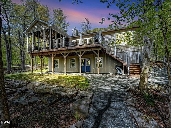 Immaculate Paupackan Lake Estates Lakefront home! Built in 2017, this gorgeous 3 bedroom, 2 bath offers a perfect blend of modern elegance & serene lakefront living. Enjoy a beautiful kitchen w/quartz counters & custom cabinets, a living room offering stunning lake views, & a primary bedroom overlooking the serene waters. Step outside to a spacious composite deck & enclosed porch, great for outdoor entertaining. The landscaped path leads gracefully to the lake, featuring a firepit, kayak rack, blueberry bushes & a custom EZ dock for your electric pontoon boat. The lower level is ready for future expansion w/ 9 FT height ceilings & rough plumbing - perfect to make a family room & sleeping space. Efficient home: tankless water heater, Generac generator, central AC & eco-friendly thermostat., Beds Description: Primary1st, Baths: 2 Bath Lev 1, Baths: Rough Plumbing, Eating Area: Ultra Modern KT, Eating Area: Dining Area, Beds Description: 2+Bed1st