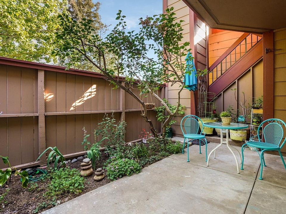 THIS ONE BREAKS ALL THE RULES: football field size patio, completely private all around, & an absolutely gigantic bedroom & more!! *** No rental restrictions; HOA incl. water/garbage; 2nd parking spot can be requested from HOA. Ample guest parking. *** Chic 1bd ground floor unit wrapped around a private patio across a wide greenbelt w/natural light pouring in. *** Huge kitchen w/breakfast bar seamlessly flows into a very spacious dining area adjacent to the living room *** Oversized bedroom feels like 2 in 1 *** Gorgeous travertine floor in kitchen & bath; wooden flooring in living areas *** Freshly painted & ready for you :-) *** Ample storage in units plus 2 extra storage closets near carport & 1 closet w/in patio. *** Full-size in-unit laundry *** Superb schools *** Ideal central location close to both hwy 880 & 680 w/groceries & restaurants nearby ***. Be dazzled with prominent mountain views on your commute home ***