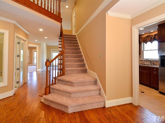 Distinctively updated Lochmere home w/ gorgeous panoramic lake views of Lochmere's Lake Lomond. Improvements include new granite kitchen counter tops, kitchen flooring, kitchen cabinets, updated master, hickory hardwood bonus room, paint, all new carpet, and smooth ceilings to name a few. This 2,772 SF, three level home has a huge 1st floor master suite & 1,463 SF of unfinished basement. The oversized wrap around deck provides privacy & easy stairway access to ground level. Seconds to lakeside trails.