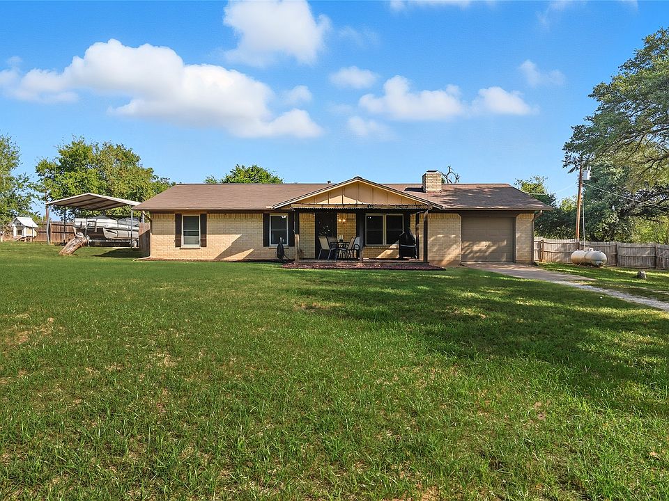 Nestled on a quiet no outlet road, this charming 3 bedroom, 1.5 bath home offers the perfect blend of privacy, functionality, and freedom. Sitting on a fully fenced one acre lot, this property is located outside city limits, meaning no city taxes and ZERO recorded restrictions, giving you the flexibility to truly make it your own. Whether you dream of raising animals, running a home based business, or simply enjoying the wide open space, this property delivers. As you approach, you’ll be greeted by towering mature trees that provide shade and character. The home features covered parking for three vehicles... a spacious two car carport plus a one car attached garage. Step inside to discover a cozy living room anchored by a stunning floor to ceiling stone wood burning fireplace, perfect for gathering around on chilly fall evenings. The thoughtfully designed Jack and Jill style 1.5 bath offers extra privacy and convenience, while the master suite boasts dual his and hers closets, ensuring plenty of storage space. The home also includes its own private water well and septic system, eliminating monthly water bills. Outside, a patio deck provides the ideal spot for entertaining or relaxing while you take in the peaceful, natural surroundings. With ample space for a garden, shop, or even a pool, this property is brimming with potential. Enjoy the serenity of country living with the convenience of being just a short drive to town. This is a rare opportunity to own a versatile property with room to grow. Don’t miss your chance to make it yours!