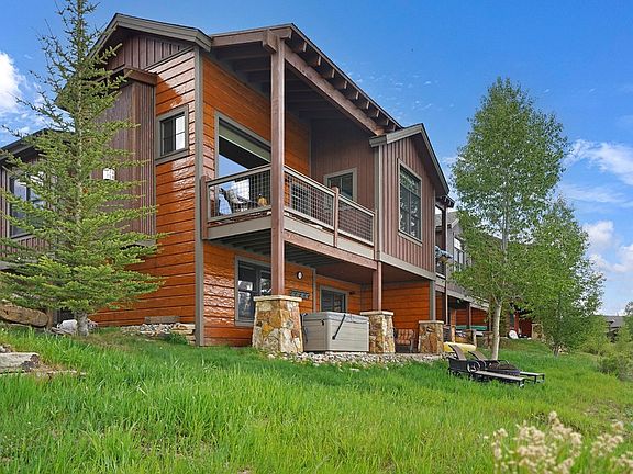 Waterfront! Stunning Angler Mountain Ranch townhome dazzles with unparalleled western views of the Gore Range. Breathtaking sunsets are perfectly reflected in the private lake just steps from your door. Besides being in the heart of Summit County ski country, the location provides easy access to Ptarmigan Peak Wilderness hiking and the bike path network along the Blue River. Wide plank white oak floors, natural stone fireplace, vaulted ceilings, and rough hewn beams provide a sophisticated nod to mountain living. Counter seating at the chefs' kitchen allows everyone to be part of meal time! Primary suite on the main floor with a well appointed bath and large walk in closet. The lower level has 2 additional bedrooms that share a bath and open up to a walk out living room. Relax in a top-of-line hot tub on the lower patio for apres and generously sized balcony is set up for seamless indoor-outdoor living upstairs. Heated two-car garage with storage closet. Forget about shoveling and additional exterior maintenance, the HOA has you covered. Sold furnished and meticulously maintained. Mountain lifestyle perfected!Primary on main floor has three-quarter bath walk-in closet