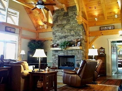 High on a ridge overlooking Mt Mitchell Golf Course magnificant Mill Creek post and beam beauty featuring granite kitchen and bath surfaces, hardwood floors, first quality fixtures, multiple heat and air systems, stainless Kitchenaide appl, tray ceilings with fans, vaulted beamed ceilings in main rooms. End of the road quiet on 6 acres of parklike land adjacent Pisgah National Forest. The only sounds you'll hear are the forest. 3 large floored attic spaces, central vac, even an indoor driving range in basement. Master his & her bathrooms. Kitchenette in fam room. Unfin bonus room over garage.