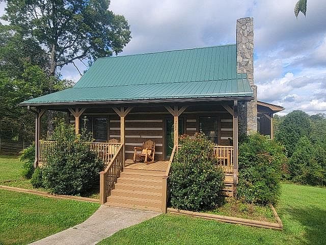 Beautiful 3 bedroom 3 bath Log Home with rock fireplace in the living room, hardwood flooring, bedroom bath on the main level. Second level offers a large loft, bedroom and bath. Partially finished full basement with a full bath. New metal roof in 2023. Enjoy the evening sunsets from the covered front porch, The screened in back porch is great for entertaining family & guest. This cabin was recently listed as a vacation rental and has a 100% five star rating. Located on a quiet setting and within minutes to Mount Airy. Call Today!