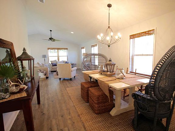 Beautiful, new construction 4 bed/2.5 bath home with garage and first floor master! The floor plan is very open with vaulted ceilings. Kitchen has white cabinets, GE appliances, lots of counter space & upgraded granite. The first level also has a huge laundry/mud room, additional bedroom, & half bath. Master bath has double vanities & a large tiled walk-in shower. Second floor has two nice size bedrooms, full bathroom & additional storage space. You could easily live day to day just on the first floor & then have the second floor for guests or as needed. The attic is spray foamed for extra energy efficiency. Yard is irrigated and has irrigation well installed. This is a great home in a fantastic neighborhood with ample space and is very low maintenance all while being only a couple of block from the beach. Property is in x-flood zone.