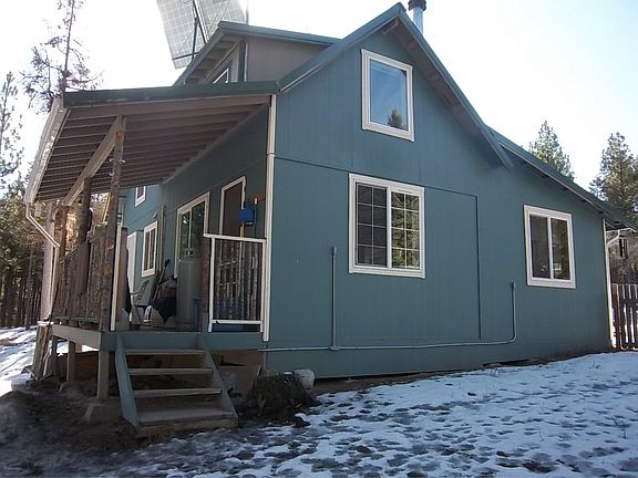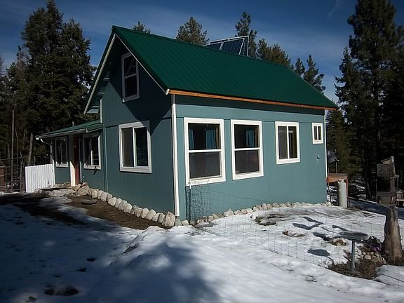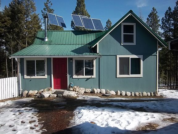 Stick framed single family home with 3 bedrooms, living room kitchen/dinning room, full bath, walk in closet, laundry room and pantry. Large windows are great for light and outside views. Hardwood floors in the kitchen/dinning room, carpet in the master bedroom and vinyl in the bath and laundry room. Tongue and groove pine on the ceiling. Heat is provided by a wood stove and propane heater. Power is provided by solar and generator. Very well insulated in the floors, walls and ceiling. Metal roofing and very nice views from the porch. Concrete hardie plank siding.
