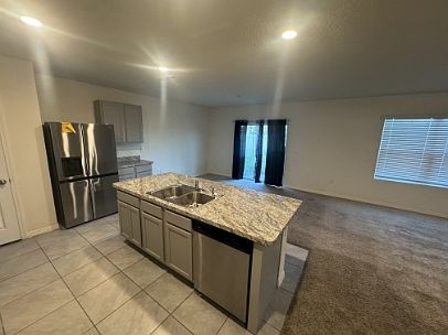This amazing all concrete block constructed four-bedroom, two and half bath, two-story home optimizes living space with an open concept feel. The kitchen overlooks the dining and great room, while having view to the lanai outside. Ample windows and a set of sliding glass doors allow lighting into the living area. The well-appointed granite kitchen features an island with bar seating, plentiful cabinet and counter space and stainless steel appliances, making entertaining a breeze. As we head up to the second floor, we are greeted with bedroom one that features an ensuite bathroom as well as three additional bedrooms that surround, a full bathroom, and a laundry area.