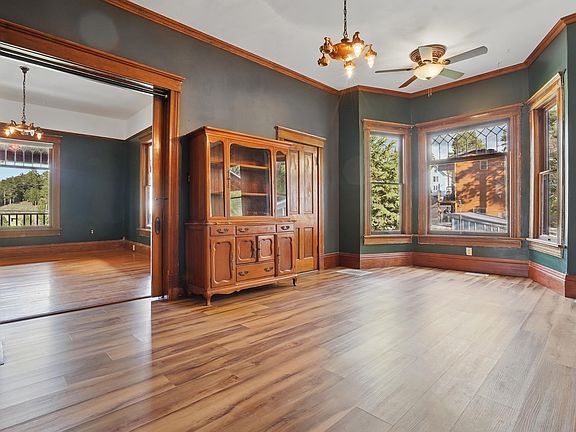 Take a look at this stunning 1909 Victorian home. Enjoy 3 bedrooms, 2 bathrooms 2 separate garages (the main garage has new electric). Coveted in Lead, you'll have a spacious driveway & two lots with a spacious yard. Exterior updates include a new brick path with bricks original to the home, newly painted siding & new gutters (2023). The partial wrap-around deck was re-done in 2023 & includes covered storage underneath. The classic Victorian features will catch your eye with 10ft ceilings, original (or replicated) trim, two large pocket doors, & original doors to each room. Throughout the home, you'll find crown molding & new paint. The living room boasts the original hardwood floor & a "New York" style fireplace set up for an electric insert. The dining room, kitchen and second bath have been upgraded with LVP. The master bedroom boasts an en-suite bathroom with the classic clawfoot tub and a walk-in closet. Looking into the kitchen, you'll find new cabinets, new fixtures, and a custom 2-inch concrete countertop. The major systems are taken care of as well including new ductwork, HVAC and water heater in 2020, new roof in 2021, drain tile on the back of the home in 2022, driveway with new millings in 2024 & a new retaining wall in 2024. Don't miss out! Call and schedule your showing today. Listed by Madison Reeves - Keller Williams Realty Black Hills, Spearfish (605)569-9019. Seller is a licensed broker in the State of SD