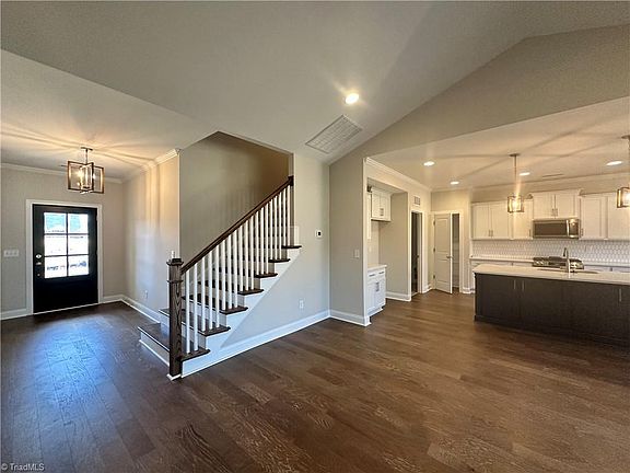 New Price on this Ashewood plan - ready to move in for the Holidays! One level living, brick exterior, public utilities on a .64 acre lot. Open floor plan features great room with cathedral ceiling adjoining brick kitchen and dining. 9 ft slider door to covered back porch for easy outdoor living. Over 2000 sqft on main level with bonus room and 3rd full bath upstairs serves well for home office or guest space. Upgraded white perimeter kitchen cabinets with nightfall color for the island for a perfect contrast - all with upgraded quartz countertops. Picket style backsplash. Engineered hardwood floors throughout main living areas including primary bedroom & closet. Spacious laundry room with added bench. Farmhouse style light package. Frigidaire Gallery Kitchen Appliances.