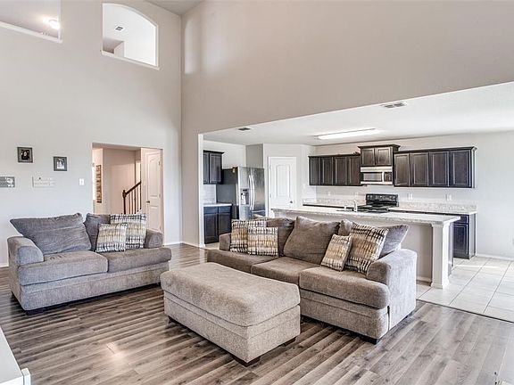 Check out this 4 bedroom home in Mustang Creek on huge corner lot! Downstairs study is 15x14 with walk in closet that could serve as fifth bedroom! Open concept, flexible floor plan with almost 3000 sqft. Kitchen with oversized island opens to family and dining room. Kitchen offers plenty of cabinetry and stainless appliances. Stainless refrigerator remains! Family room with cozy electric fireplace for beauty and or heat! Laminate flooring in family. Owners retreat downstairs with separate shower and garden tub. Upstairs game room large enough for pool table and more! Relax under covered backyard patio, plenty of room for everyone! Great community is close to all the shopping you need. 2022-12-16