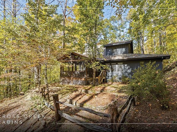 Step through a quaint trellis courtyard to the rustic front porch, then inside through a charming Dutch door into a light-filled interior with soaring cathedral ceilings, a striking stone fireplace, and abundant windows that showcase the natural beauty outside. The kitchen offers a farmhouse sink and stylish cabinetry, while the main-level primary suite, dining space, den, sitting, and bonus room ensure convenience, with the second bedroom and bath upstairs for added privacy. A screened porch, Adirondack-ringed firepit, terraced gardens, and a partially fenced yard offer endless opportunities for outdoor enjoyment.