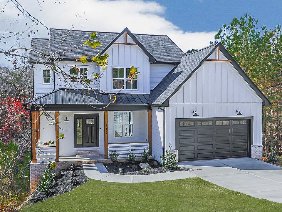 NEW CONSTRUCTION IS READY TO MOVE-IN! If you enjoy a low maintenance lifestyle, this one is for you! Craftsman style 2-story home is located minutes from I-575 access and in an established neighborhood, on a cul-de-sac street. Porches everywhere! There is a rocking chair front porch that wraps around one side of the home and two decks at the rear of home on the main and terrace level. The main floor features an entry foyer, dining room with wainscoting, open concept great room, eat-in area and a gorgeous kitchen! The kitchen features, tile backsplash, floating shelves, under cabinet lighting, quartz counters and a full complement of smart, stainless steel appliances (refrigerator is included). A kitchen island with an in-cabinet microwave oven and additional storage space is perfect for food prep time! Storage space is solved with an extra large walk-in pantry, complete with an eye-catching barn door. The great room is complete with a decorative electric fireplace that will provide additional heat. Upstairs you will find upgraded carpeting and a a gorgeous Owner's suite! The accent wall in the master sets off the room with window placement in the perfect location for furniture. There are two walk-in closets and a spa-like bath with double vanity, soaking tub and a custom tiled shower / water closet. Three additional bedrooms, a full bathroom with tub/shower, a spacious laundry room complete the upper floor. The lower level is unfinished and has a walk-out deck. Smart thermostat and ring doorbell included! Award winning school district (Ball Ground Elementary, Creekland Middle, Creekview High) Please be sure to visit the 3D virtual tour to understand how the rooms flow, just hit the "play" button to virtually walk through the home.
