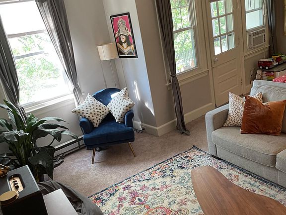 Gorgeous and very large 2 and a half bedroom apartment available August 1st in the heart of historic Narberth, with separate extra large living room, spacious dining room and office nook, and small laundry room with stacking washer dryer. The kitchen has stainless steel appliances, including a dishwasher, gas stove, and microwave and has a true over abundance of counter space and cabinets. The leafy balcony is nestled in the shade of a gorgeous tree with ample space for a sofa and 2 chairs, or a 4-6 person outdoor dining table as well as great exposure for plants and flowers. The bathroom is airy and light-filled, with a large linen closet just outside. The apartment is the entire top floor of a lovely and historic building (only 2 easy flights up a wide stairway), so it is extremely quiet with beautiful light at all times of day. It has lovely moldings and a vintage carved archway. The 2 largest bedrooms have ample space for a king or queen sized bed with space for additional furniture. Each of the larger bedrooms have a wide closet. The smallest bedroom is the perfect size for a nursery, home office, or a small exercise room. The apartment is located right in the middle of the charming Narberth business district. Walk to a wide array of independently owned shops, restaurants and bars, including a small family grocery store, a bottle shop and a liquor store with an outstanding wine selection. There are sports courts, a very large playground, and the Narberth library all within a 5 minute walk. The train and bus line are steps away. You can be at 30th Street in 15 minutes. Whole Foods, Giant, Trader Joes, and all of Suburban square are within an easy 5-7 minute drive, or a 20-30 minute walk. Pets are OK on approval with a small additional pet rent. This is the takeover of a lease on August 1 for a family who had to relocate out of Pennsylvania for work. The lease will end on May 31, but the new tenant will be offered the chance to renew. Water and trash removal are included. Tenant is responsible for gas and electricity. Pets are allowed on approval.