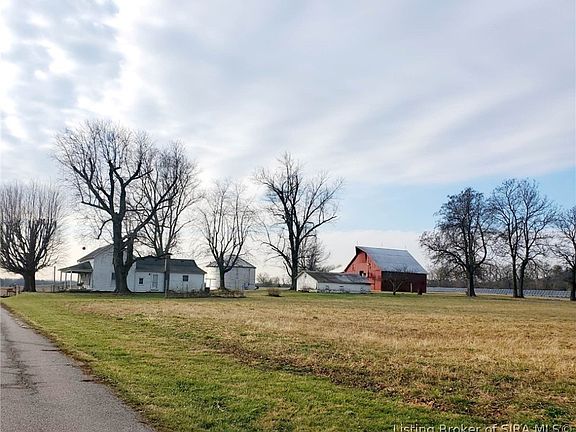 Mini-Farm on 5 acres!! 1.5 story home with 3/4 bedrooms, 1 bath. Large eat-in kitchen with range, refrigerator, and built-in hutch. Large living room w/gas burning fireplace. Small dining area. Large mud room. Unfinished cellar. Covered front porch and covered side patio. Large barn w/lean to, chicken coop, grain bin (not operational), plus detached 20x36 garage. Sold As Is. Located between Scottsburg and Henryville.
