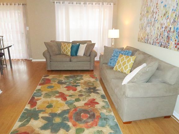 Move in ready this lovely unit features a 2 story entrance foyer, open floor plan with wood style floors, granite counter tops newer appliances, dining area with slider leading to private patio. There is a large foyer area on second level make great office area. 2nd bedroom is very bright with a double closet. Laundry room is on the 2nd floor for your convenience. The master bedroom has cathedral ceilings, a large walk in closet. There is a lovely private bath with stall show and separate soaking tub. All this and a one car attached garage. Great location closet to all major highways and lots of shopping.