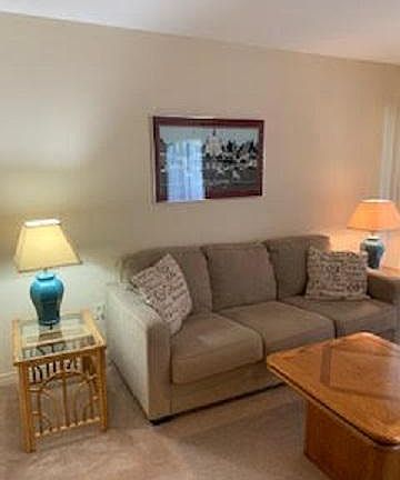 This is a furnished corner unit on the golf course. NO TV in this Unit. Tenants are responsible for ALL UTILITIES. 2 bedrooms upstairs, each with a Queen bed, private bath & walk-in shower, 1/2 bath down. Granite countertops, all appliances. Washer and Dryer in the unit. NO PETS ALLOWED... 6 MONTH Minimum Lease