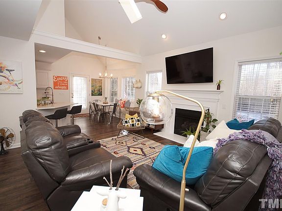 Welcome Home! Well-loved 3BR+Bonus w. Updates Galore! Modern Hardwoods, Vaulted Ceilings/Skylights, Updated Lighting. Master down has spa-like Bath & walk-in closet. 2 Story Living Rm w. central fireplace. Open Kitchen w. Stainless Appliances & Quartz counters. Separate Dining Rm. Charming bayed Breakfast Nook. Stylish & Modern Decor thru-out. 2 BRs, Hall Bath & Huge Bonus upstairs. Grill out on the Patio o'looking large fenced yard! Convenient Location w. easy access to Hwys & Downtown Raleigh. Hurry.