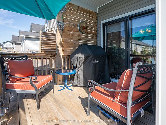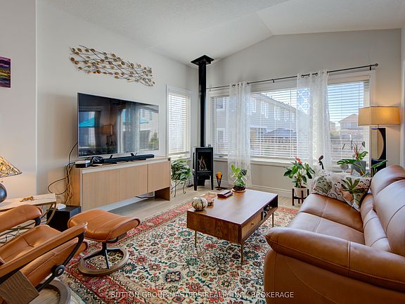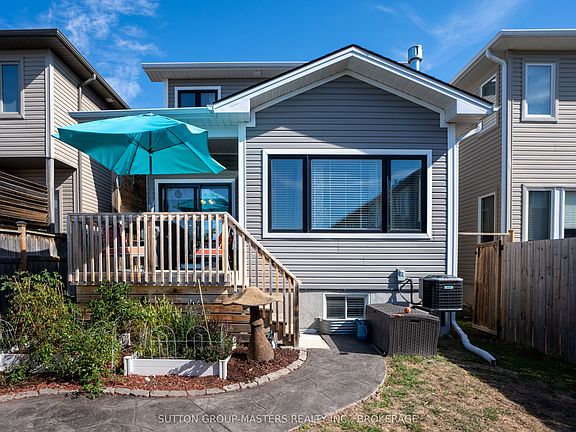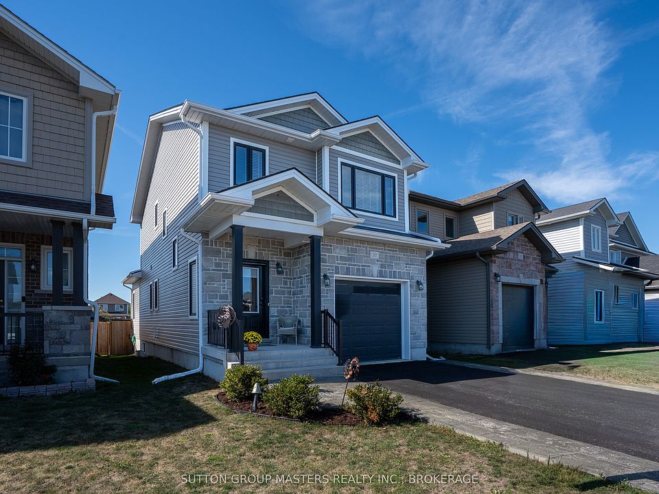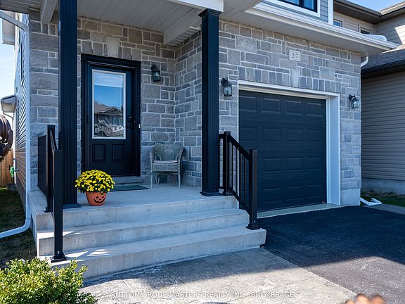 Welcome to this stunning 3-bedroom, 3-bathroom home located in the sought-after Woodhaven neighborhood. This beautifully upgraded property features an open-concept main floor with vaulted ceilings, large windows for natural light, and a cozy corner fireplace. The modern kitchen is a chef's dream, complete with a quartz island, touch faucets, coffee bar, and ample cabinetry and new induction oven. Patio doors from the dining area lead to a covered deck overlooking a fully fenced backyard with stamped concrete patio-perfect for entertaining .Upstairs, you'll find three spacious bedrooms including a luxurious primary suite with a gorgeous ensuite bath. The upper level also includes a convenient laundry room with built-in storage and a folding table. The professionally finished basement offers a large rec room and a dedicated workout area, providing additional living space for your family's needs . Additional features include upgraded finishes throughout, vaulted ceilings, corner fireplace, covered deck with gas hookup, professionally finished basement with rec room and gym area. Conveniently located near the future planned Kingston General Hospital. (complete list of upgrades on file)