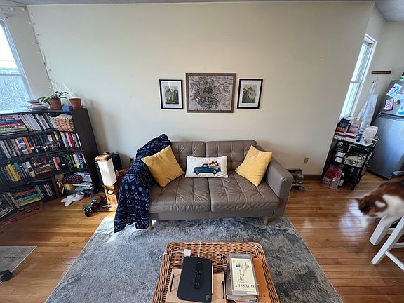 Davis Square Closest train = Davis Square (Red Line T) 1 bed/1 bath (third floor, left side) Open kitchen/living room Hardwood floors Coin-op laundry and storage in basement Street parking with City permit Off-street parking available for rent September 1, 2025 Move in Pets are $75/month