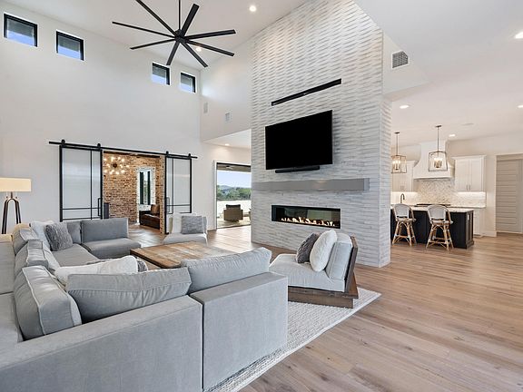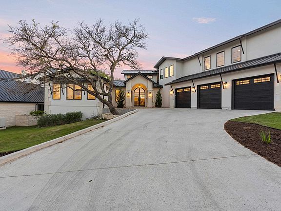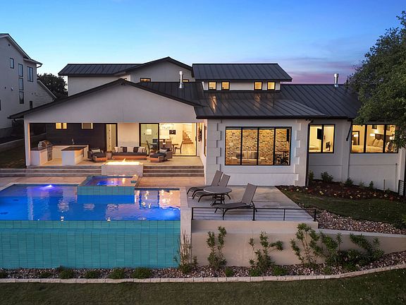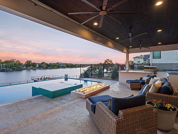 Welcome to the epitome of luxury living perched on the shores of Lake LBJ. Located within the prestigious Legendary Estates subdivision, this custom home highlights state-of-the-art features, upgrades, and amenities. Situated on almost .7 acres, this property boasts over 86 feet of waterfront, providing endless opportunities to enjoy the spoils of Lake LBJ. Upon entering the home, you'll be welcomed by a grand foyer that sets the tone for an expansive floor plan adorned with high ceilings. This seamlessly integrates with each living area, perfect for both entertaining guests and everyday living. The gourmet kitchen is equipped with top-of-the-line appliances, custom cabinetry, and a generous island. The luxurious primary suite is a private retreat, with ample space, a spa-like ensuite bathroom, and his and her closets. Make your way to the cocktail room, where you'll find unique masonry walls and expansive shelving perfect for showcasing your favorite wine. Step outside to discover your own private oasis, where you can lounge by the sparkling infinity pool and enjoy the tranquility of the Texas Hill Country. The pristine boat dock features one boat stall and two slips for personal watercraft. With ample covered space still available for design, the opportunity for additional enhancements are endless. After a fun day on the lake, enjoy a game of pickleball on the sport court or grab some popcorn and enjoy your favorite cinema in the confines of the cozy media room.