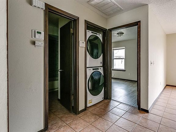 Great 2 bed 2 bath home so close to Regional Park, & the Midwest City dog park. Inside you will find updated flooring with a light natural gray color. The living room has a corner fireplace with built-in bookcases. The kitchen features a dining space, dishwasher, refrigerator & stackable washer & dryer. The front bedroom has a full bath with a walk-in shower that has been updated. The 2nd bath in the hall has also been updated with tile. The property is completely fenced & has an open patio.