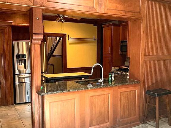 ONE BLOCK FROM THE WATER! Magnificent home w/5BRs, 3 full baths, & 1 half bath. Formal Living Room & Dining Room + eat-in Kitchen w/walk-in pantry. Kitchen opens onto patio; den w/fireplace open to breezeway to attached single garage & storage room. Level 2 features amazing Master suite including walk-in closet & large bath w/soaking tub & shower + 3 more Bedrooms. Impressive entry hall/foyer w/wide staircase to Lvl 2. Woodwork in the house, much by the homeowner, absolutely beautiful. Lvl 3 (no heat/air) accessible by permanent stairs offers huge bonus room & hallway w/multiple closets. Yard offers beautiful beds & gardens. Electric mini-splits thru out. Great income potential as a Air B&B or Vacation rental. $8K/month potential cash flow. Plenty of boat parking nearby.
