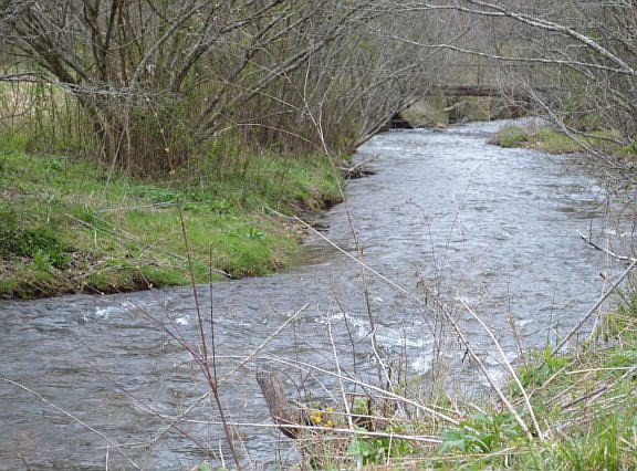 Very nice, brick house with bold, rushing trout stream and beautiful bottomland which could be used as farmland. Gorgeous year round view! Hardwood floors in living room with a rock real Masonry fireplace. Right off of kitchen there is a large walk in pantry. Wonderful usable large 10x32 deck with a 34x10 covered porch. There is also a lower 10x32 deck off of the family room. The lower family room will stay cozy with the wood burning stove situated on a rock hearth.Large Master bedroom and bath on main level with a whirlpool bath and large walk in closet.