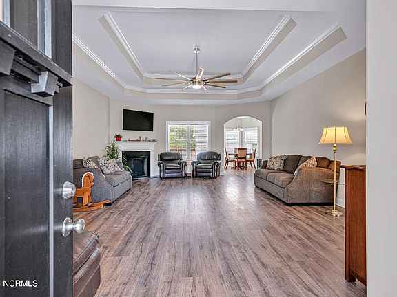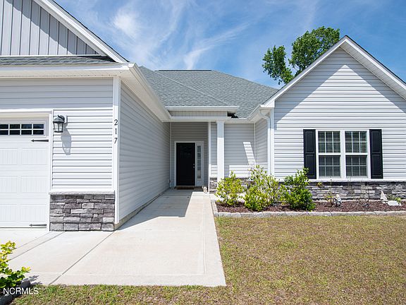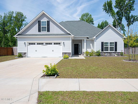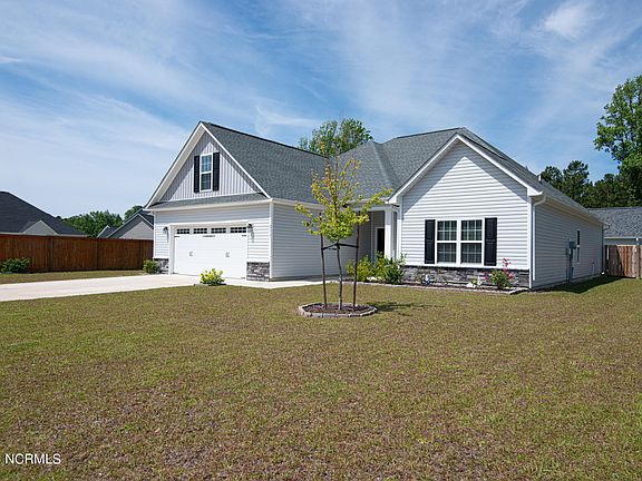 This immaculate, practically new home (built in 2020) is located in the much sought after Shipwright Pointe subdivision just off of Hammocks Beach Road. Stepping in, the expansive living room with a double tray ceiling and massive ceiling fan, only begins to display the beauty of this home. Each room has artistic flow and natural light. The kitchen, complete with stainless steel appliances, granite countertops, and lots of cabinet space opens onto the covered back porch making easy access for outdoor dining and entertainment. The primary bedroom is just over 250 hsft of awesomeness with tray ceiling and 2 walk-in closets. The enormous primary bathroom has double sinks, separate shower and soaking tub as well as double inset medicine cabinets. The other 3 bedrooms (one located over the garage) are well sized and carpeted. The back yard has a large patio with an extended concrete pad and sidewalk running to the 16x24 custom built, fully wired workshop, a craftsman's dream. Hurry!!! Its hotter than a stolen tamale and will be gone like the wind soon! Schedule your private viewing today!