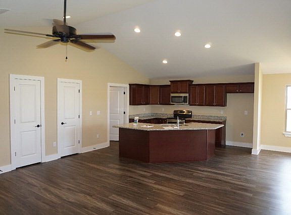 Under construction in Marsh Bridges Subdivision Summerdale, AL. Large lots, country setting with lake. 3BR/2BA split floor plan, vaulted, smooth and tray ceilings, recessed lighting, 2 car garage, low maintenance concrete plank exterior siding, stainless steel appliances, 3 cm granite counters throughout, plank flooring, dimensional shingles, one year new home warranty. Large covered back porch, across from lake. Ask about special 100% financing.