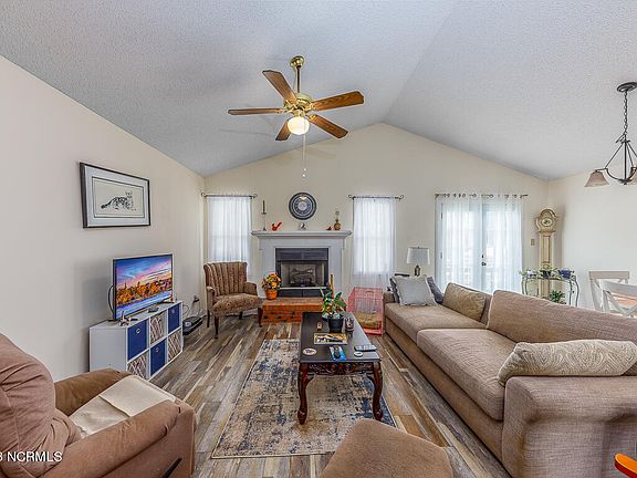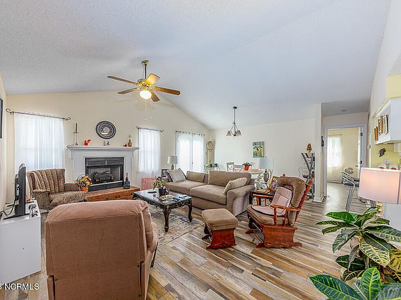 Enjoy the scenic views of the water from this lovely home in Lakemere Subdivision, part of River Bend. This home features high ceilings, a cozy gas fireplace, a relaxing tub, a sunroom overlooking the pond, a new deck, and a fenced side yard. The kitchen has granite counter tops due to be installed June 13th and the floors are new throughout the house. The primary bedroom offers a walk-in closet and a double vanity in the attached bathroom. You'll love the convenience of living close to downtown New Bern's charming shops and restaurants, as well as a top-rated heart hospital. If you're looking for adventure, you can launch your boat at the nearby marina and explore the Trent River, Neuse and Pamlico Sound. Convenient to Emerald Isle Beach for some fun in the sun. The local airport is only 10 miles away. Come see this beauty today!