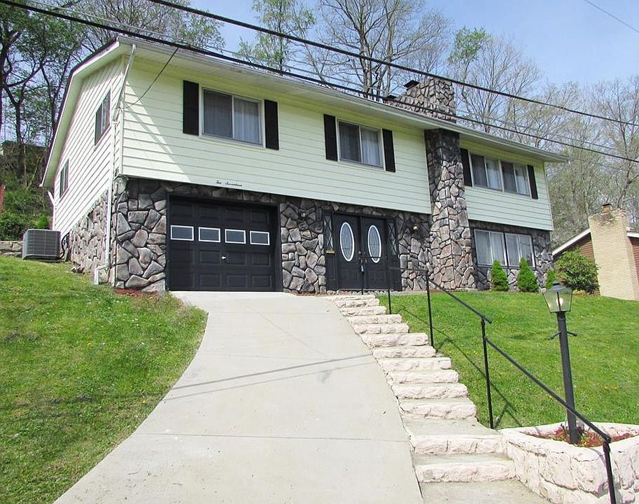 Well maintained stone and siding home. 3 beds, 2.5 baths & 2 fireplaces. Kitchen recently updated. Spacious bedrooms & living & dining areas. Nice stone work fireplace. Large deck with stone patio underneath. Gorgeous views overlooking neighborhood lake.