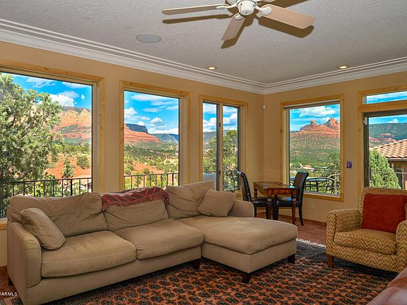 Situated high on the hill, this home is perfectly located to capture Sedona's famous red rocks! From the moment you enter this home, you will be WOWED by the unblockable, panoramic Red Rock Views! Kitchen features granite counters with stainless steel appliances. Seller's pride of ownership shows with several improvements and upgrades. A full list is attached. You will never want to leave your master suite when waking up to those red rock views. Step outside to your covered deck to take in even more. Master bath includes separate Jacuzzi tub and shower. Custom built walk in closet. Guest bedroom suite includes custom Mexican sink and tile accents in shower in bathroom. In-law Apartment includes kitchenette, living room, two bedrooms and bath downstairs. Built in sound system