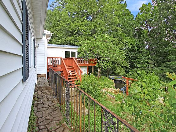 Barkley Lake across the road and seasonal lake view from this 2.4 acre lot. This manufactured home on permanent foundation offers an 24x20 addition with partial basement-unfinished. You find spacious gathering room w/GL fireplace, nice sunroom addition. Spacious country kitchen with center work island and 6x6-side room pantry. You find a 2 Bay garage & 2 car carport to the other side of home. Koi pond, storage bldg, and vinyl fencing around most of lot. **TLC is needed, Some work incomplete & selling "AS IS".