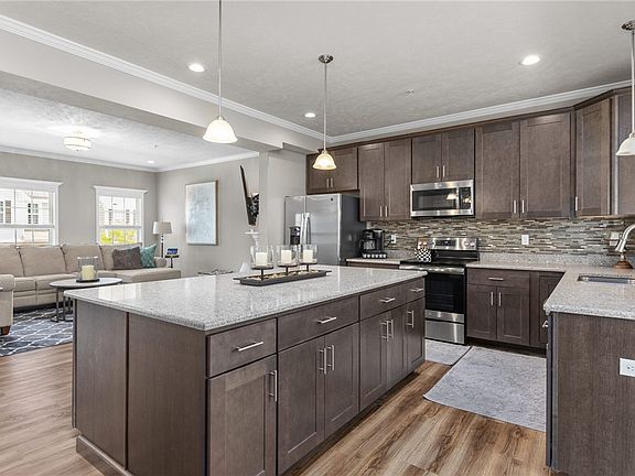 Welcome this updated, pristine townhome in the heart of Moon Twp. Built in 2019, this one owner home has had many improvements, including an epoxy floor in the spacious, walk-out garage, stamped concrete patio, rear landscaping, LVP flooring in the office-styled bedroom & custom blinds throughout. On the main level, well-designed layout seamlessly connects the living room, kitchen & dining area, making it perfect for entertaining friends & loved ones. The heart of the home lies in the gourmet kitchen, equipped w/stainless steel appliances, ample counter space & a large center island. Find yourself enjoying morning coffee on the deck or relax with a good book in the evening. Experience the convenience of a first floor laundry room. The spacious primary suite offers a private sanctuary for relaxation, complete with an ensuite bathroom featuring a luxurious soaking tub, a separate walk-in shower & dual vanity sinks. You will swoon over the custom-designed walk-in closet. This is it!