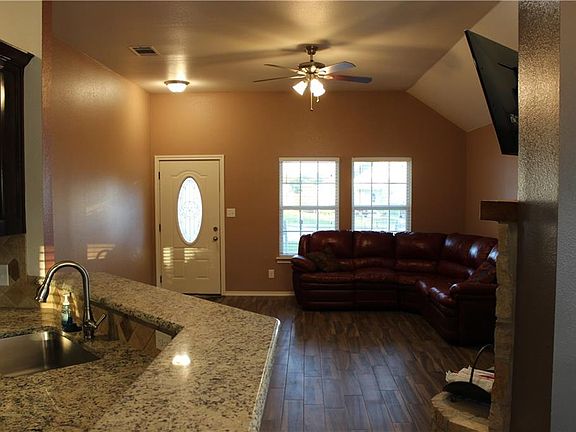 Beautiful 3 bedroom 2 bath on a corner lot in a cozy HOA-free neighborhood! Granite and tile throughout! Barely lived in. Paint has been touched up. 2 gates, one of them a double gate if you want to build a shed or park a trailer in the backyard. 10' Ceilings, all bedrooms have ceiling fans, 2 inch blinds in every window, fireplace has a raised stone hearth! TV mounts can be removed and holes patched if desired.