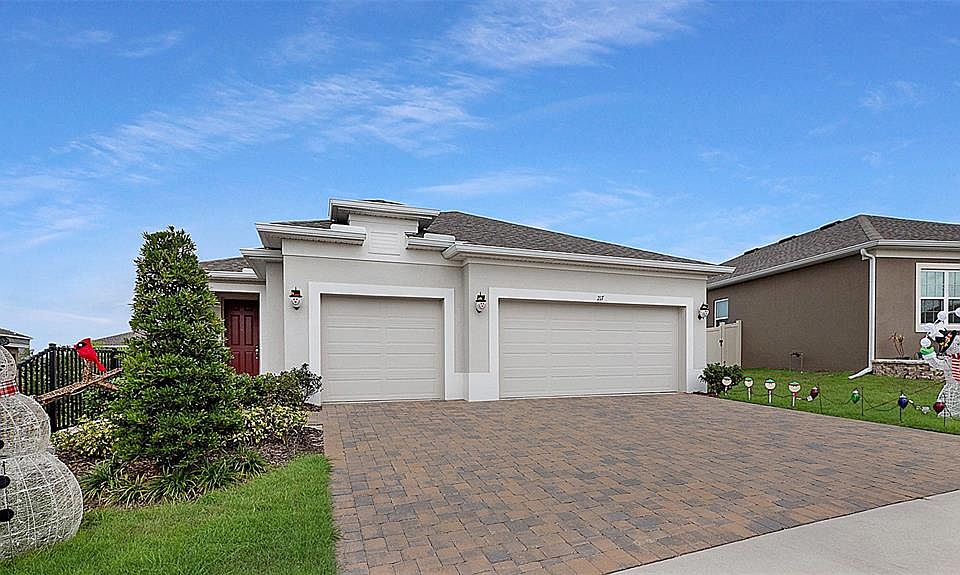 Just picture yourself in this gorgeous 1-year-old, 4-bedroom, 2-bath POOL home with 1,900 sq. ft. and a 3-car garage in the highly desired Preserve at Sunrise community! This home sits on an extra wide lot and boasts an oversized 3-car pavered driveway and a massive 80ft wide PVC fenced backyard. Stepping through the front door, you will be immediately impressed by the unique and thoughtful finishes throughout, including new luxury vinyl plank in the foyer, living spaces, and kitchen; new high-quality tile and dual vanities in both bathrooms; upgraded light fixtures, fans, hardware, and faucets; and extra in-wall braces and hidden cable concealer kit for the TV mount in the living room. Enjoy the open living concept of a large kitchen, dining area, and family room space featuring glass sliders out to the pool deck. The kitchen is a chef’s dream, with Quartz countertops, custom backsplash, beautiful cabinetry with ample storage, stainless steel appliances, and a large island. Retreat to the master suite, which offers a spacious bedroom and adjoining bath with a double vanity, a large walk-in shower, and walk-in closet. The additional bedrooms on the other side of the home are nicely sized and offer ample room for everyone. Head outside to the comfortable lanai which offers plenty of space for relaxing, or take a refreshing splash in the heated private pool overlooking the large fenced backyard. This impressive home is located across the street from one of the community parks with ample street parking making it very convenient when entertaining. Preserve at Sunrise community features lighted streets, sidewalks, multiple parks, community pool, playground, and a large covered dock with community lake access to Lake Lucy. Conveniently located near shopping, restaurants, highway 27 and the Florida Turnpike, this home truly checks every box on your wish list and will not last long. So, schedule your appointment to see it today!