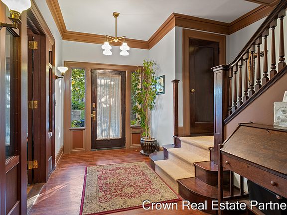Step into timeless elegance in Heritage Hill. An 1890s home with roots in Grand Rapids' creative past — once home to a furrier, then a furniture craftsman. Handcrafted millwork & its enduring charm, speaks to a legacy of craftsmanship and care. Hardwood floors, intricate crown molding, stained glass windows & rich original woodwork throughout. Main floor features spacious living & sitting room w/ cozy fireplace & built-ins, a sunny three-seasons room, formal dining room, & beautifully renovated kitchen that blends modern updates with classic charm. Upstairs- four bedrooms plus a serene primary suite with walk-in closet and large vanity area. The finished third floor adds a fifth bedroom, half bath, & flexible bonus space-perfect for guests or a home office. Enjoy one of Heritage Hill's rare large lots. Parking for up to 15 cars plus thoughtfully curated gardens, raised garden beds, and a two-story heated garage. Historic beauty meets modern comfort in the heart of Grand Rapids.