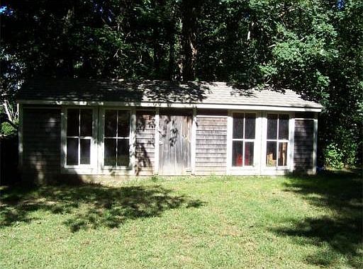Lovely antique Greek Revival home with just the right combination of old and new, features open bright kitchen with French doors to a semi-circle deck ~ lots of storage ~ Canadian Maple butcher block counter tops, center island, and pantry closet! Spacious living and dining rooms with center fireplace ~ wide fir hardwood flooring throughout ~ 3 beds and 2 full baths up with skylights and eyebrow windows providing lots of natural lighting. MB has soaking tub and separate shower. Functional office space with built in bookcases and shelving to help keep you organized. Two outbuildings ~a renovated barn and bunkie. Great location ~ walk to everything the village has to offer or to the Sandwich Boardwalk and Town Neck Beach.