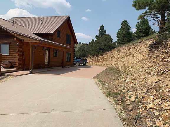 This Beautifully Crafted Custom Real Log Home sits atop Rosita Hills thus providing the most Scenic Views of the Sangre de Cristo Mountain Range. The home itself is of SUPERIOR quality as well as sufficiency as it is fully solar powered by a system that has been very well maintained over the years. There are 3 large bedrooms and 3 baths, with an open concept kitchen/dining and living room. The garage has been enlarged to provide plenty of workspace for those who like to dabble in crafting or simply home maintenance. The long driveway has been upgraded to include a concrete base all the way up to the front door for convenience of all kitchen deliveries. The home consists of water baseboard heat for 6 zones, and a pellet stove for extra warmth on cold winter nights. The windows tilt in for easy cleaning and all restroom fixtures are of EXCELLENT quality. The wrap around deck is the perfect provision to catch both sunrise and sunsets. The home and deck are currently being re-stained to help preserve the wood exterior.