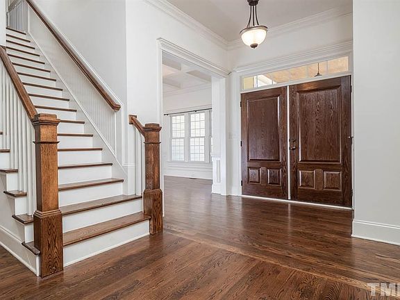 Custom excellence w/gorgeous hardwood floors, coffered ceilings, wainscoting, trey ceilings. Enjoy your chef's dream kitchen w/gas stove, farmhouse sink, double-oven, & large island. Butler's pantry to formal dining room. Large family room w/brick fireplace. 1st-floor master w/spa retreat. Office w/custom bookshelves. Large bonus can be 5th bedroom, incl study nook upstairs, great in-law or guest suite w/pvt bathroom on 2nd floor. Fenced backyard w/lots of trees. Walking dist. to neighborhood shops & gym