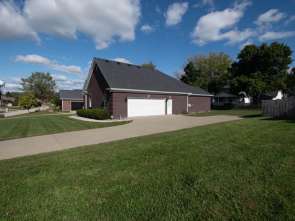 Discover luxury in this stunning all-brick, 3-bed, 2-bath home featuring GeoThermal heating, hardwood floors, and fine craftsmanship. The elegant kitchen boasts quartz countertops, custom Amish-built white cabinetry with soft-close doors, pull-out shelving, and a large island with sink—perfect for meal prep and casual dining. Enjoy meals in the charming breakfast area or the refined dining room with tray ceiling. Crown molding and detailed woodwork add to the home's sophistication. Beyond the coffee bar and pantry is a utility room with a sink. The primary bath offers a spacious tiled shower, raised vanity, and walk-in closet. The oversized two-car garage includes storage space and keyless entry. Relax on the deck overlooking the serene backyard. This meticulously maintained 5-year-old, one-owner home is in a quiet, low-traffic neighborhood with convenient access to highways, shopping, hospitals, and dining.